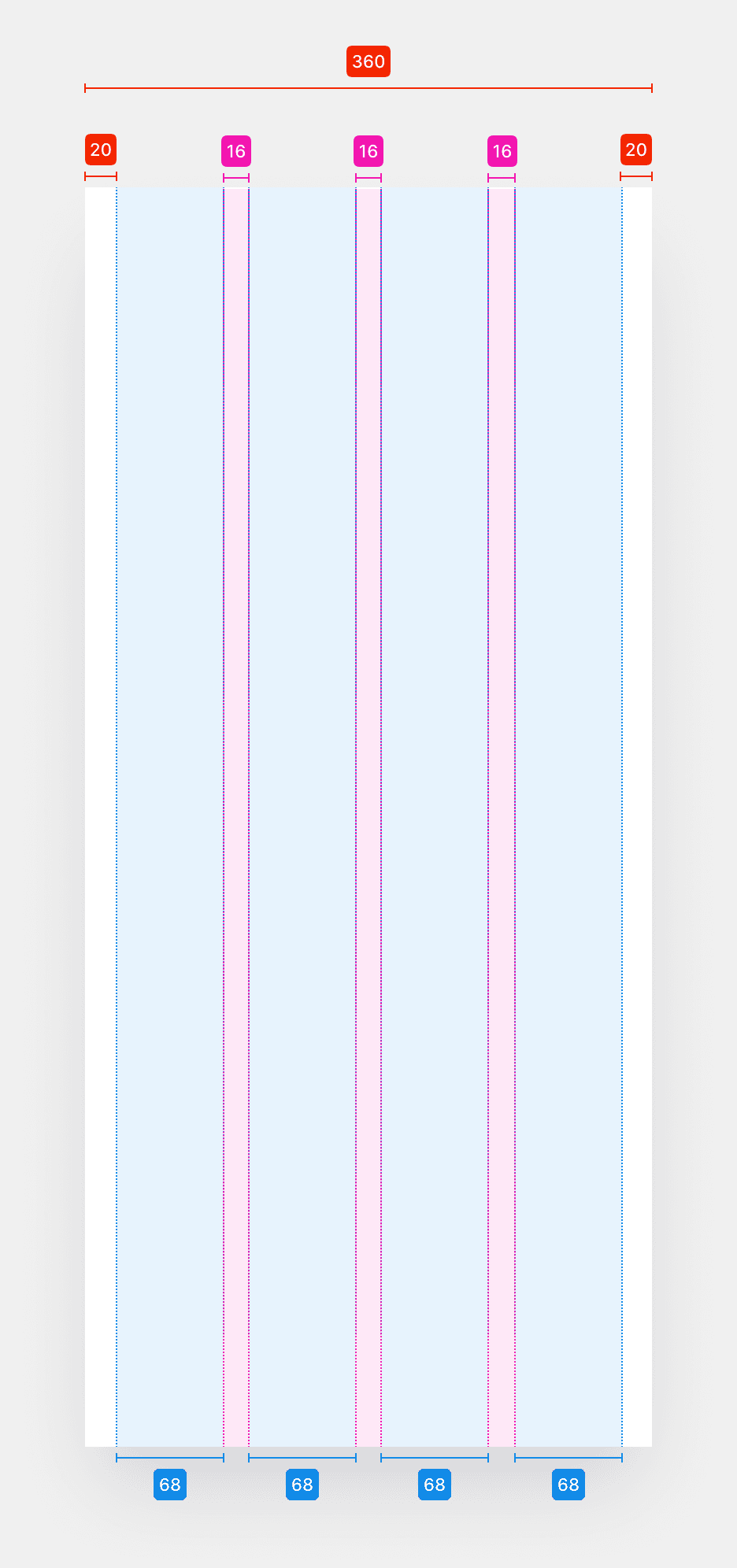 The grid was designed to scale cleanly from mobile to web. A 4-column grid at 360px maps directly to a 12-column grid at 1200px (4×3), allowing three mobile screens to fit seamlessly into the web layout. This made responsive design predictable and enabled teams to reuse layouts across breakpoints with minimal rework