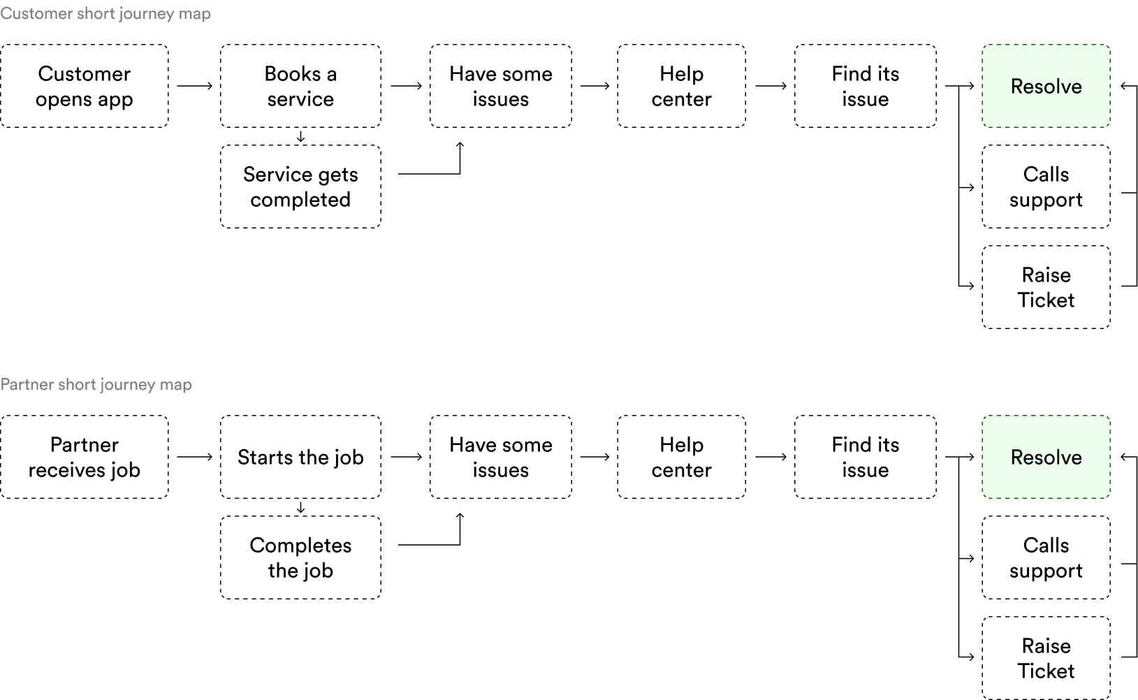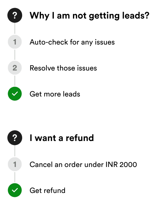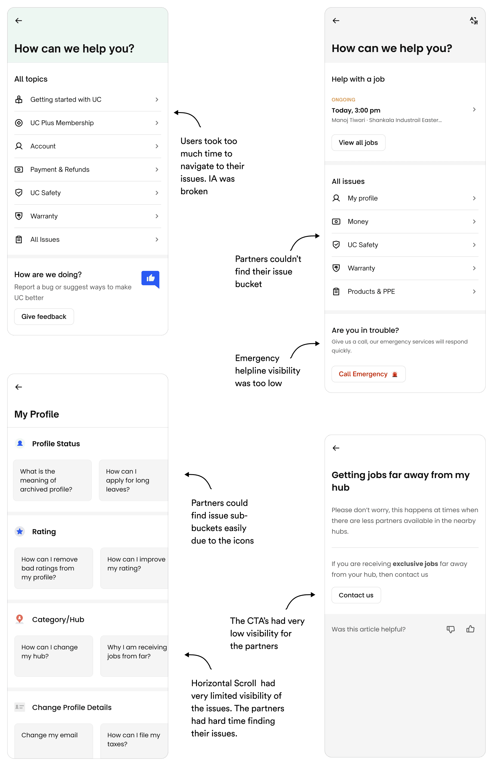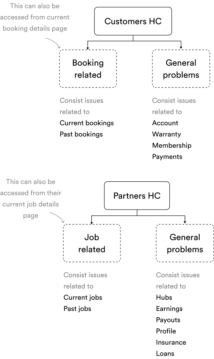 We broke down issues into two major buckets for both of the users. Keeping the same behavioural modals lowers the cognitive load due to which users can find their issues easily.