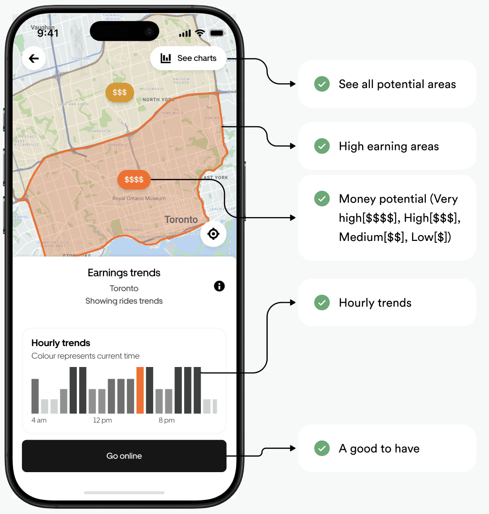 Drivers will actively use the heat-map feature to plan their shifts effectively